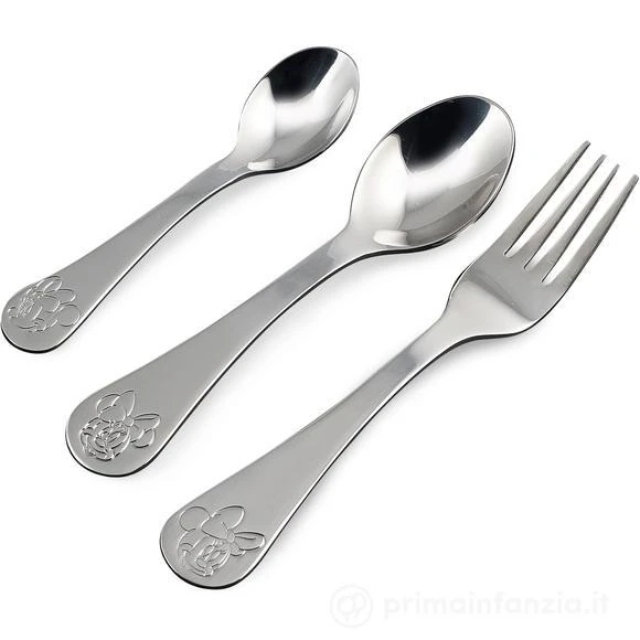 Set da 3 posate in acciaio inox con simbolo di Minnie con impugnatura ergonomica e punte arrotondate.