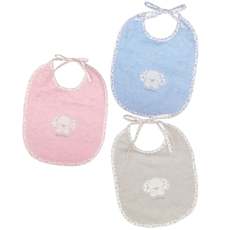 Andy&Helen Bavaglio Rettangolare in Cotone con Cagnolino Ricamato, Taglia Media è un morbido bavaglio pappa di forma rettangolare realizzato in spugna di cotone. Ricamato con un dolce cagnolino. Misura: 20 x 25 cm, taglia media. Colori disponibili: Rosa, Beige, Tiffany.