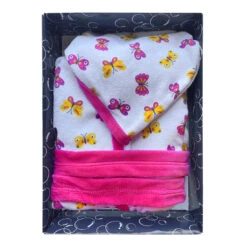 Bebitaly Accappatoio Bambino In Spugna Con Maniche Lunghe, Fantasia Farfalle Bianco Fuxia