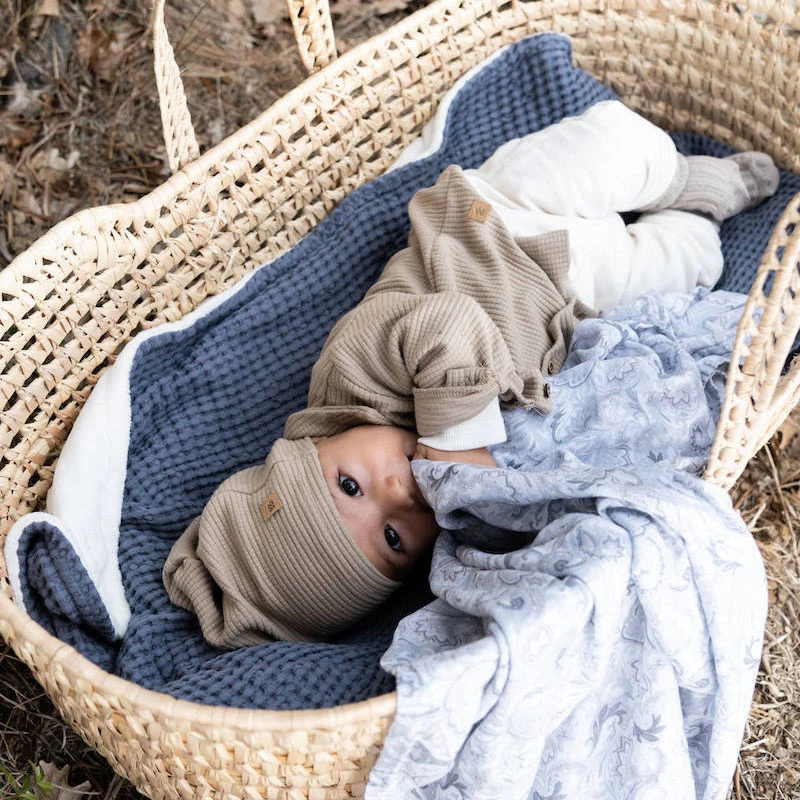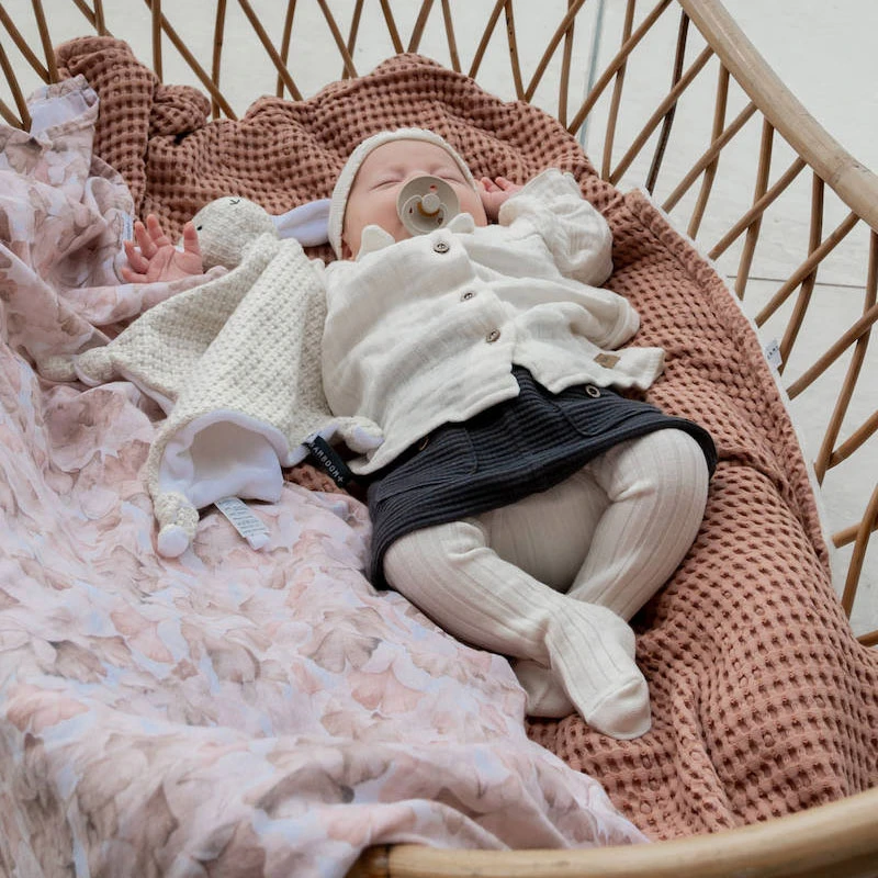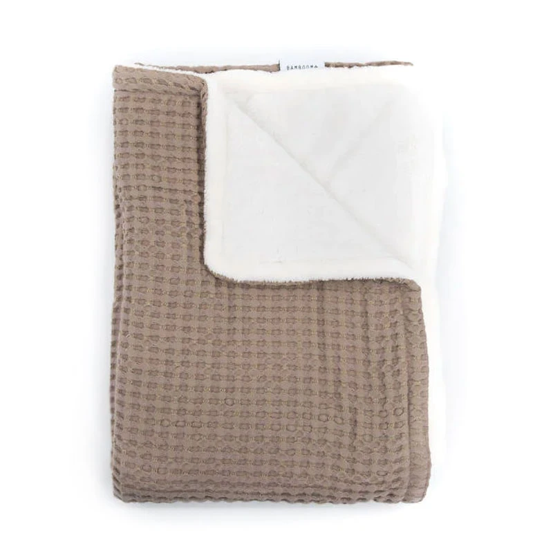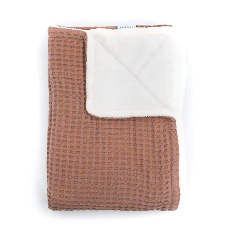 Bamboom Coperta Culla Goffrato in Spugna di Bambù Organico e Peluche 100x75cm è una calda e morbida coperta clinica multiuso, perfetta per avvolgere il neonato nei primi giorni di vita o per tenere al caldo il bambino nel passeggino, nella culla o nel lettino. Bamboom Coperta Culla Goffrato è realizzato in bambù 100% organico, morbido e traspirante mentre l’interno è in peluche 100% riciclato. Dimensioni: 100 x 75 cm.