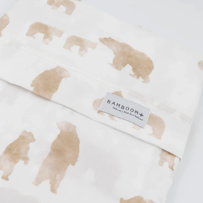 Bamboom Lenzuola con Federa per Culla e Carrozzina 75x100cm – Orso di Bamboom con federa abbinata è ideale come set per il cambio del lettino, elegante e morbido al tatto. É realizzato con un mix di bambù organico e cotone, leggero e traspirante, perfetto per ogni stagione.