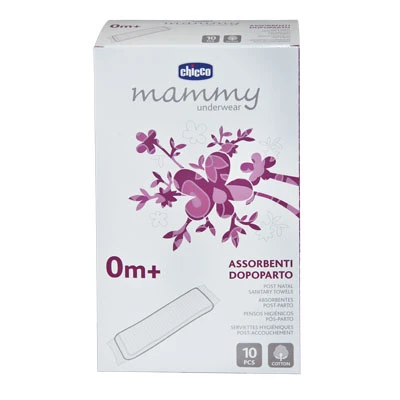 Assorbenti Dopoparto Mammy Underwear Chicco sono assorbenti in cotone studiati per il periodo dopo il parto, morbidissimi, più lunghi e più larghi degli assorbenti normali.