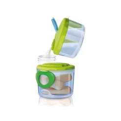 Il Dosatore Latte in Polvere System di Chicco è un pratico prodotto che rende l’allattamento ed il consumo della merenda anche fuori casa. E’ composto da due vasetti, uno per la preparazione del latte in polvere, uno per trasportare la merenda del bambino, una volta cresciuto. Tolti i divisori, entrambi i contenitori possono essere utilizzati per conservare il cibo o riscaldarlo nel microonde.