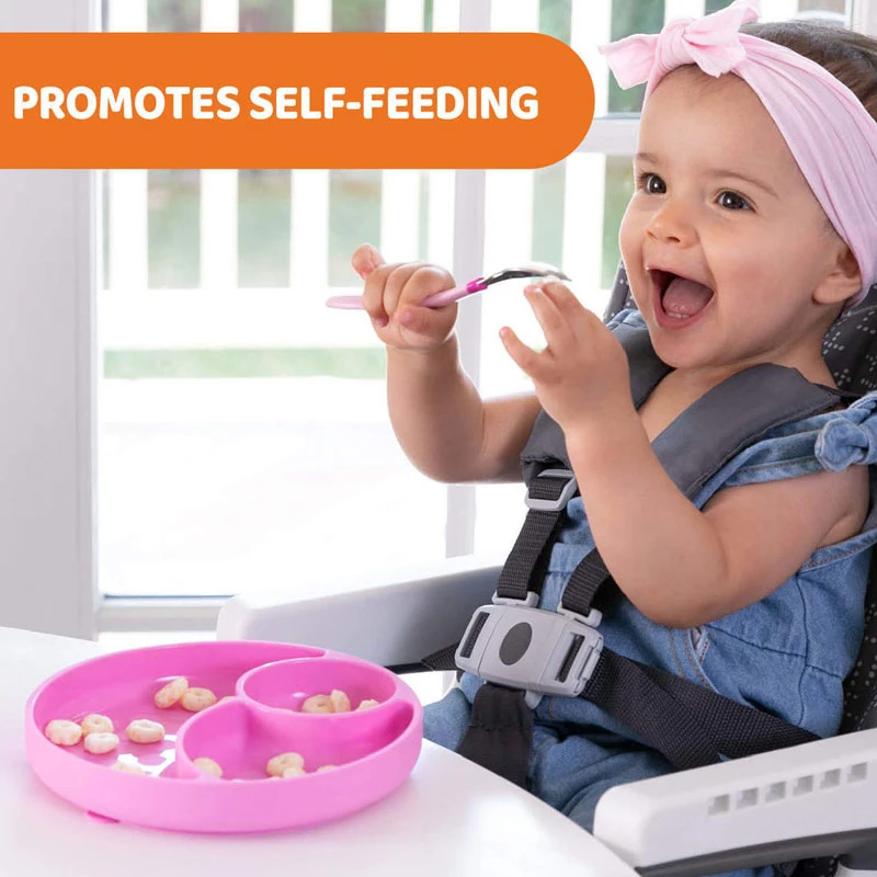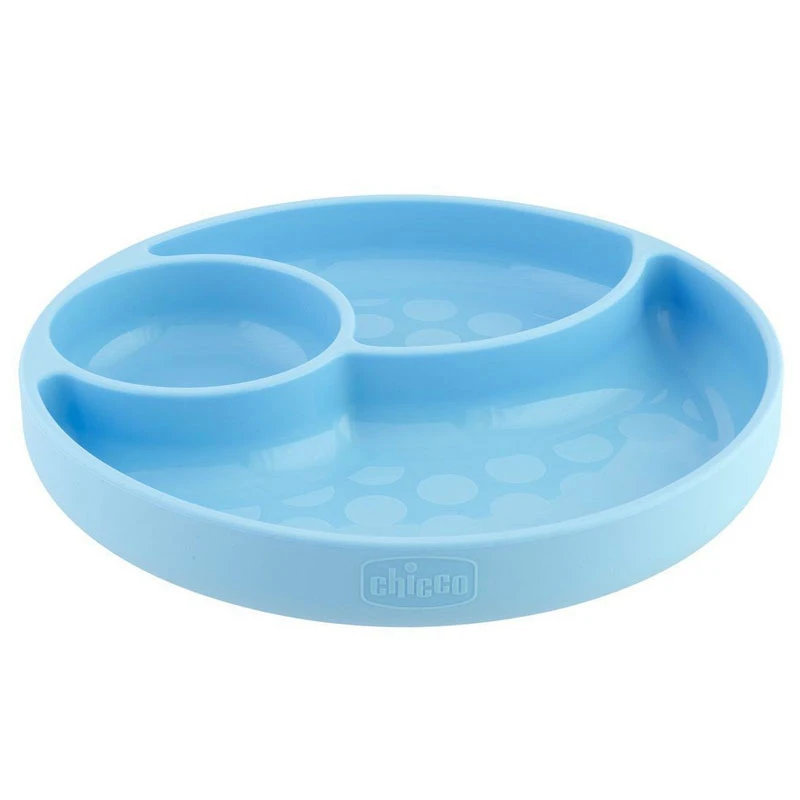 Chicco Piatto in Silicone con Ventosa stimola il bambino ad alimentarsi in maniera autonoma. Realizzato al 100% in silicone alimentare di alta qualità, Il Piatto con Ventosa Chicco resiste alle alte temperatura ed è compatibile con microonde e lavastoviglie. Il piatto per bambini in silicone di Chicco è dotato di una base a ventosa che previene gli scivolamenti e lo mantiene sempre in posizione, inoltre è suddiviso in tre scomparti per separare gli alimenti. Ideale a partire dai 12 mesi. Privo di BPA.