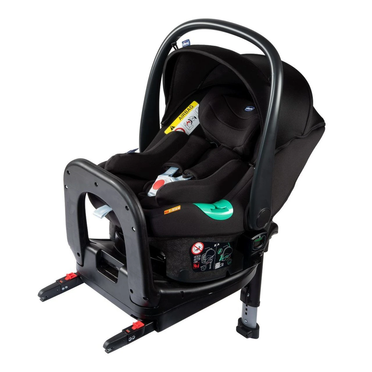 Chicco Seggiolino Auto Kiros iSize Fast-In – Pirate Black rispetta la normativa ECE R129 i-Size ed è omologato per il trasporto dei neonati da 40 a 78 cm (dalla nascita a 12 mesi circa). É un seggiolino estremamente sicuro e accessoriato, fornito di cintura di sicurezza, kit comfort composto da spallacci e coprigambe imbottiti e integrato di base Isofix con piede di supporto che garantisce viaggi stabili e sereni. Kiros assicura una comoda seduta soprattutto nei primi mesi di vita del neonato con il pratico materassino riduttore, morbido e confortevole, indispensabile per sostenere maggiormente la testa e il collo del neonato. L’installazione avviene esclusivamente in senso contrario alla marcia con le cinture di sicurezza dell’auto + con o senza sistema Isofix.
