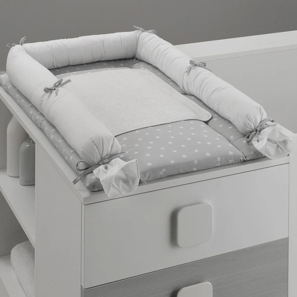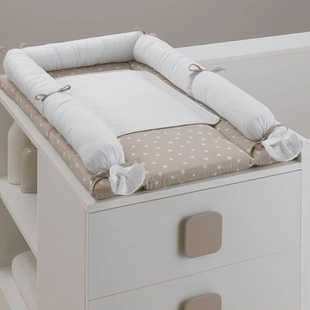 Erbesi Fasciatoio Morbido per Lettino Easy in Tessuto Imbottito è progettato per appoggiarsi sopra al piano rialzato del , è perfetto per accogliere il bambino in un fasciatoio accogliente, morbido e stabile. Realizzato in soffice tessuto con imbottitura interna.