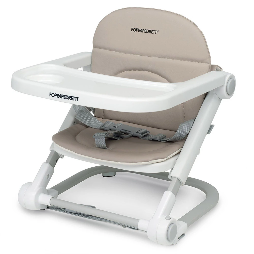 Foppapedretti Alzasedia Lift Seggiolone Pieghevole con Seduta Imbottita max 15kg di Foppapedretti è comodo alzasedia sicuro, utilizzabile con o senza vassoio, progettato per quando i bambini imparano a stare seduti da soli e fino ai 3 anni circa. Lift è il seggiolino pieghevole che si aggancia a vari tipi di sedia grazie alle pratiche cinghie incluse. Puoi utilizzarlo a casa con al ristorante, si fissa facilmente e rimane stabilmente attaccato alla sedia, inoltre quando ritirato occupa poco spazio d’ingombro. Il vassoio e la seduta sono regolabili in multi posizioni. La morbida imbottitura in tessuto effetto pelle è removibile e lavabile.