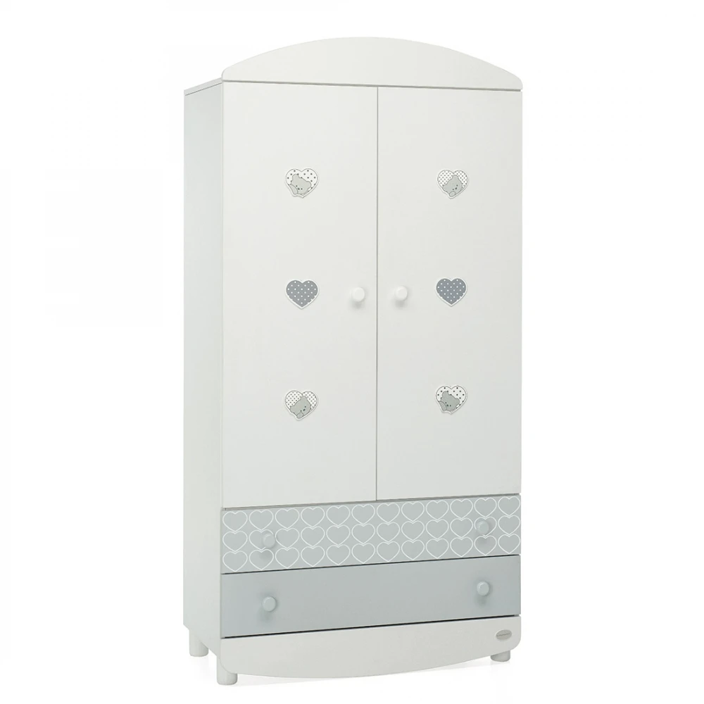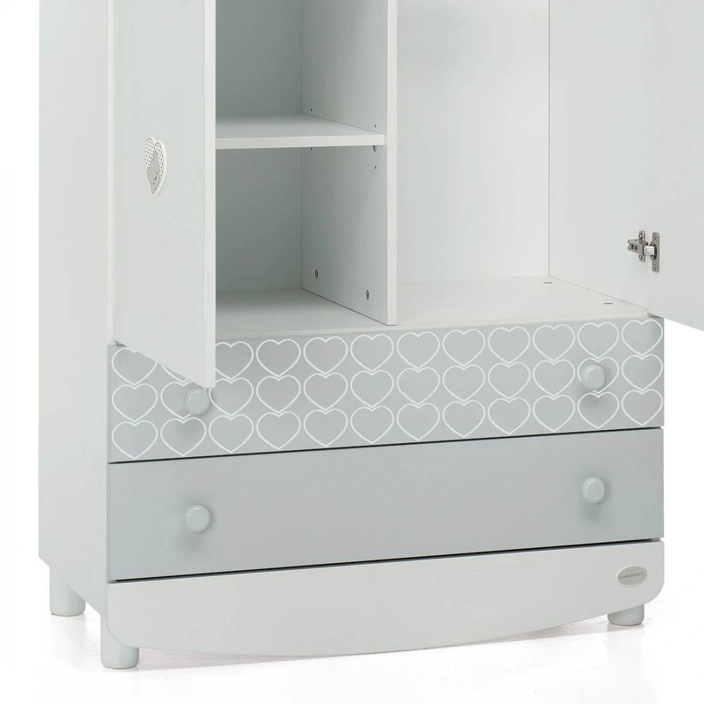 Foppapedretti Armadio Lovely con Piano Regolabile e Barre Appendiabiti di Foppapedretti è un capiente armadio a due ante, dotato di due spaziosi cassetti, ampi vani con piani regolabili e due barre appendiabiti. Armadio Lovely è realizzato in legno, decorato con graziosi orsetti e cuori. Dimensioni: 180 x 50 x 90 cm.