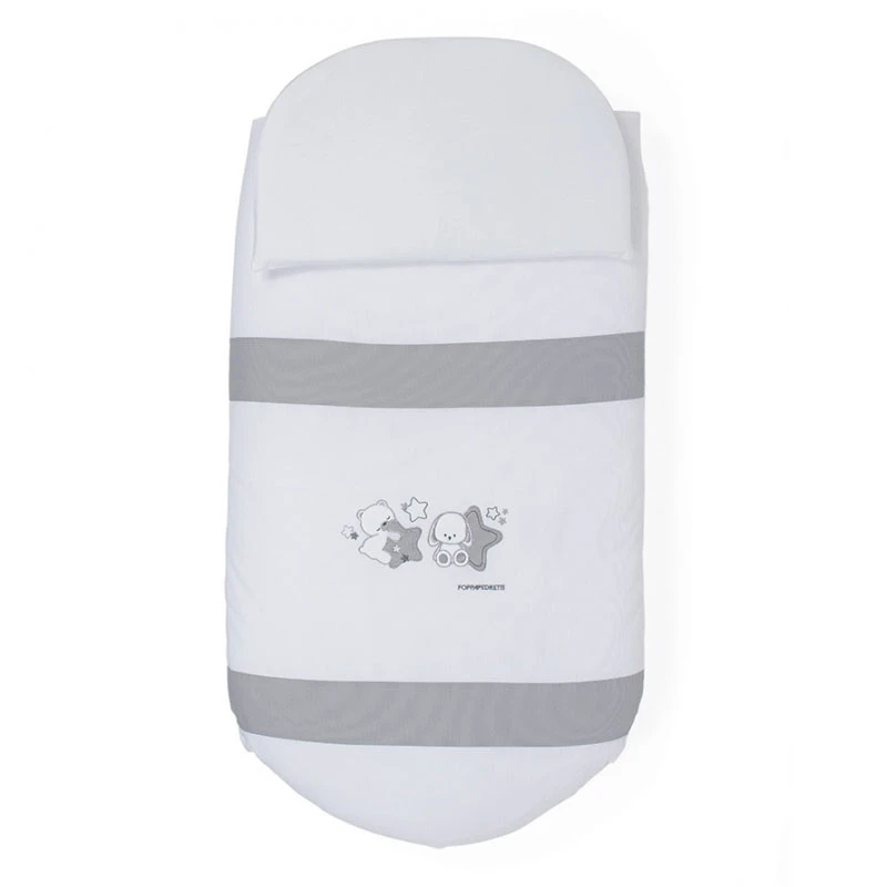 Foppapedretti Completo Piumone Lettino Ovale Armony con Paracolpi e Federa di Foppapedretti è un morbido e caldo set tessile composto da paracolpi giroletto (imbottitura poliestere e rivestimento in cotone), piumone imbottito in cotone e federa cuscino in cotone.