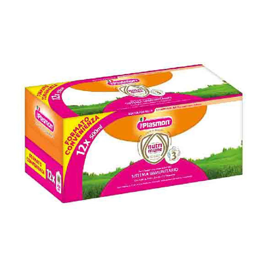 Plasmon Latte Nutrimune 3 Liquido 12 x 500 ml. Alimento liquido per bambini a base di latte intero sterilizzato UHT. Pronto per l’uso.