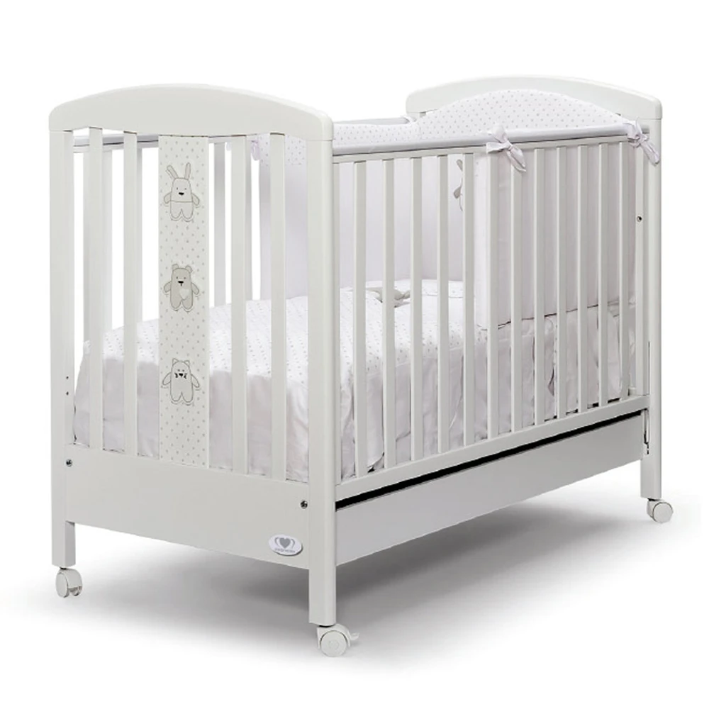 Linee semplici e piacevoli decorate con simpatiche figure che rendono tenero questo lettino di alta qualità. Materiali scelti per essere robusto e durevole nel tempo.