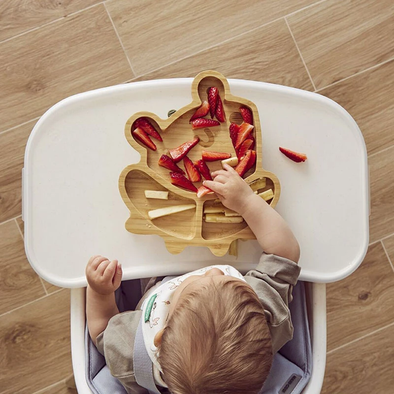 Miniland Piatto per bambini Wooden Plate in legno di bambù, con ventosa di Miniland è un comodo piatto a forma di rana con divisore che crea tre spazi in cui mangiare. É dotato di ventosa in silicone anti-rovesciamento che assicura al piatto di rimanere stabile e fermo durante l’utilizzo. Il Piatto per Bambini Wooden Plate è realizzato in legno di bambù che proviene esclusivamente da boschi sostenibili. Aiuta il bambino a diventare autonomo al momento del pasto. La ventosa in silicone anti-rovesciamento.