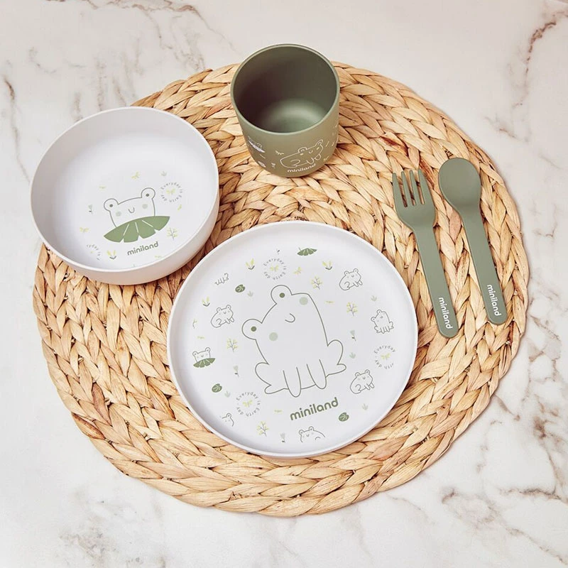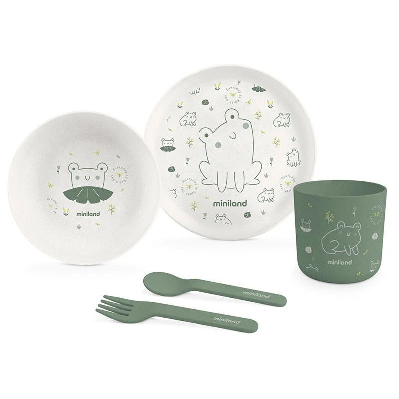Miniland Set Pappa Neonato Naturmeal Frog Con Piatto Fondo E Piano, Bicchiere, Posate