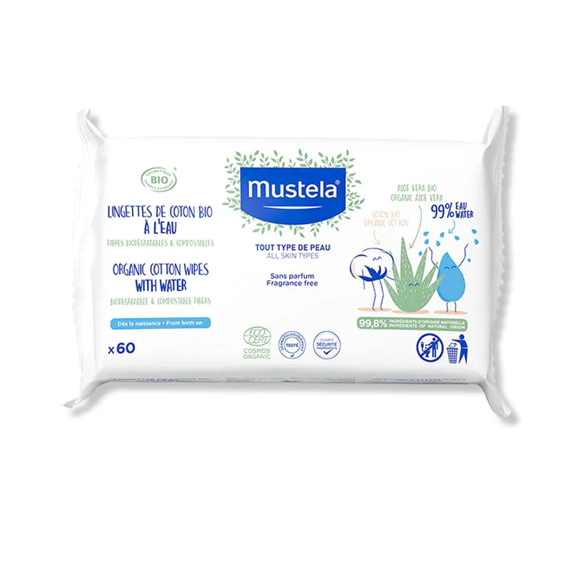 Mustela 60 Salviette All’Acqua In Cotone Bio