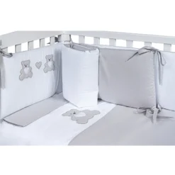 Set 4pz Rivestimento Tessile Piumino, Coprimaterasso, Federa, 2 Paracolpi Per Lettino Lella – Orso