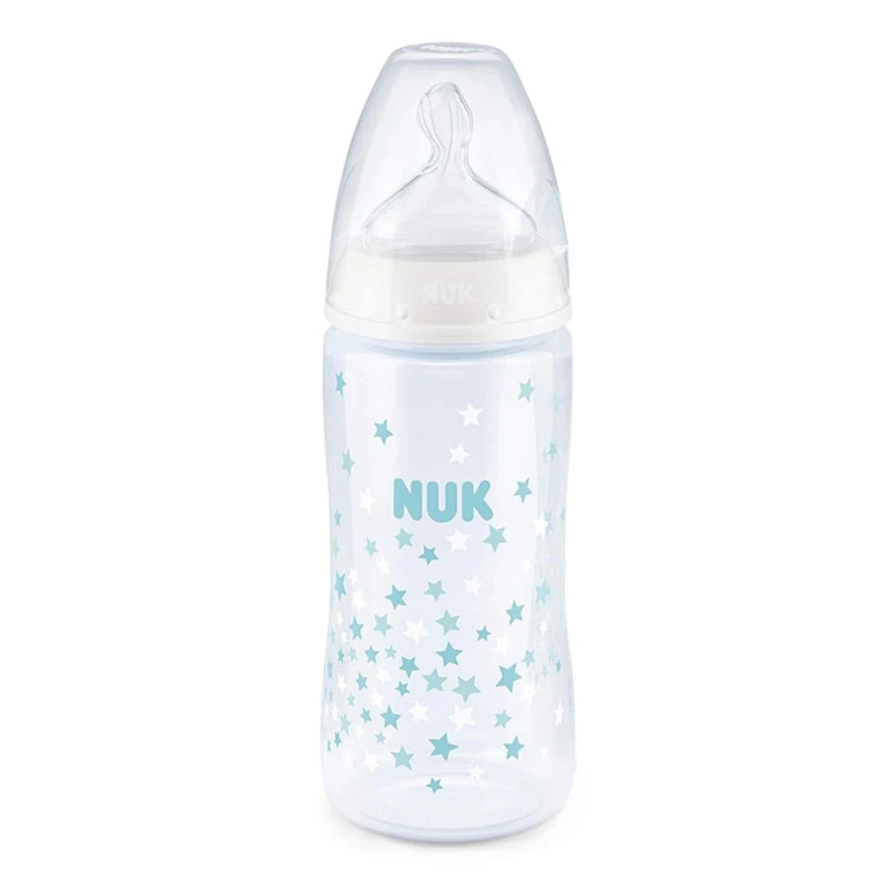 Nuk Biberon First Choice Plus con Controllo della Temperatura, 0-6m, 300ml permette al bambino di assumere il latte alla giusta temperatura (circa 37°C) grazie ad un indicatore che, cambiando colore, ti avvisa se il latte è in temperatura oppure se è troppo freddo o caldo. Il Biberon First Choice Plus con Controllo della temperatura ha la tettarella in lattice, materiale molto morbido ed elastico che assicura una suzione simile a quella naturale. Ideale per i neonati dalla nascita ai 6 mesi. Capienza: 300ml.