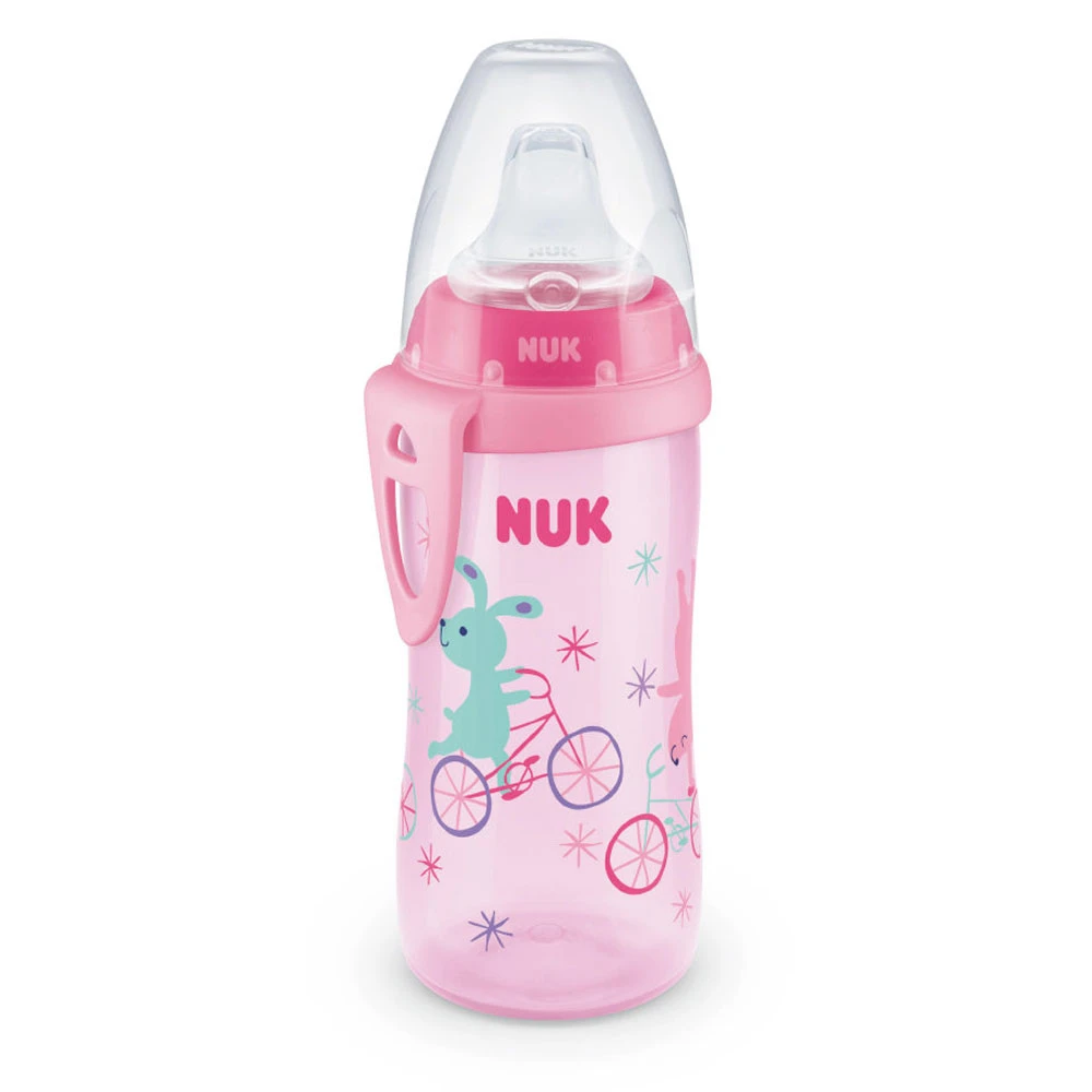 Nuk Tazza Active Cup in Polipropilene, Beccuccio Antirovesciamento in Silicone, 12m+ 300ml – colori assortiti ha un morbido beccuccio in silicone Push-Pull Anti-Rovesciamento e cappuccio per il trasporto con clip. Prodotto privo di BPA. Capienza: 300ml. Indicato per bambini da 12 mesi in sù.