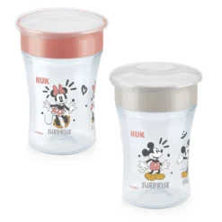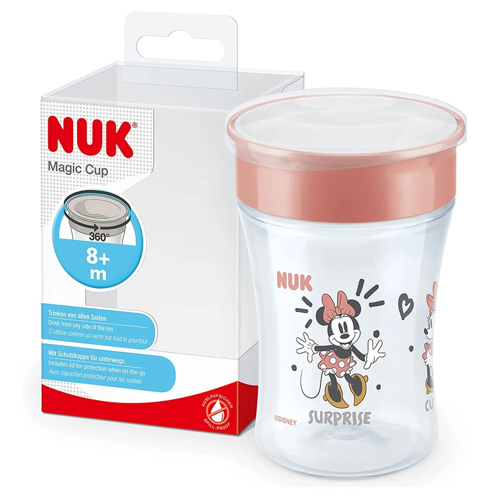 Nuk Tazza Magic Cup Disney Minnie e Mickey Mouse, con Cappuccio Antigoccia, 8m+, 230ml è perfetta come prima tazza del bambino. É provvista di bordo anti-goccia utilizzabile a 360° gradi, facile da afferrare per i bambini dai 8 mesi in sù. Il cappuccio protettivo per il trasporto impedisce perdite d’acqua grazie alla fascia in silicone. Capienza: 230ml. Senza BPA. Disponibile in due varianti: Disney Minnie, Disney Mickey Mouse.