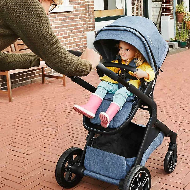Infine, il tocco di stile che volevate da sempre: l’elegante design del passeggino è arricchito con dettagli in similpelle sulla barra protettiva per il bebè e sull’impugnatura regolabile in altezza.