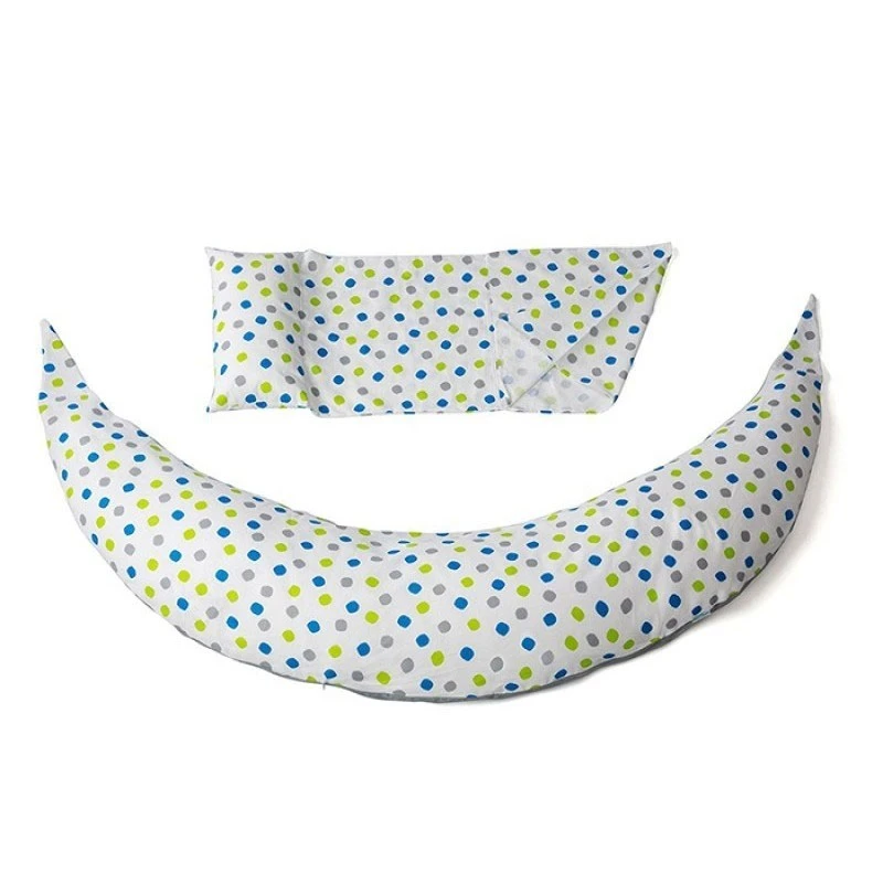 Nuvita Cuscino Gravidanza e Allattamento DreamWizard con Supporto Schiena di Nuvita è un morbido cuscino dotato di supporto per la schiena regolabile a seconda dell’altezza della mamma e dello stato di gravidanza. Cuscino DreamWizard aiuta a non girarsi sulla schiena durante il sonno favorendo la posizione sul fianco sinistro, la posizione migliore per la mamma ed il bambino poiché agevola la circolazione del sangue. Se la mamma si gira sul fianco destro, il supporto sostiene la pancia per un maggior confort. Il Cuscino DreamWizard Nuvita si adatta alla forma del corpo della mamma grazie all’imbottitura in microsfere che permette di regolare la giusta distanza tra bambino e seno, ciò andrà ad impedire al bambino di ingerire aria durante la poppata, diminuendo così casi di coliche e disturbi e prevenendo le irritazioni al capezzolo. Il Cuscino DreamWizard è realizzato in materiale anallergico e traspirante. Disponibile nella variante Big Dots.