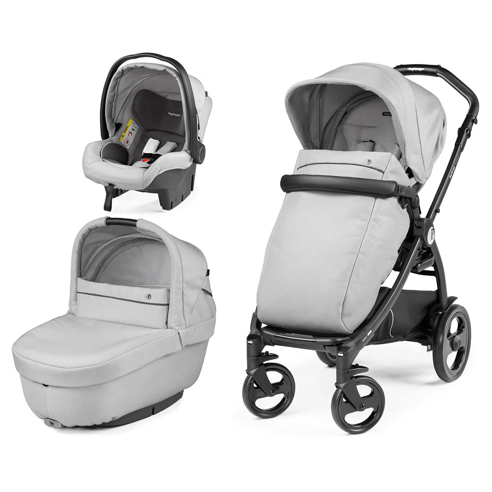 Peg Perego Trio Book Smart Modular con Passeggino, Navicella Culla Elite Smart e Seggiolino Auto Primo Viaggio SL segue il tuo bambino nella crescita dalla nascita fino ai 4 anni. Comprende Telaio e Passeggino Book, Navicella Culla Elite Smart omologata ECE 44/04 utilizzabile anche come navetta auto e Seggiolino Auto Primo Viaggio SL, per bambini dalla nascita ai 13 kg.