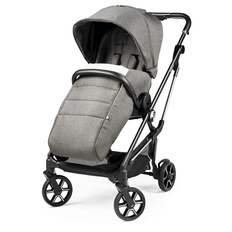 Il Passeggino Vivace Peg Perego accoglie i bambini dalla nascita fino ai 22 kg e ha una chiusura centralizzata per aprirlo e chiuderlo con un solo comodo click! La seduta reversibile fronte genitore/fronte strada consente al neonato di scoprire il mondo a 360° gradi e, grazie allo schienale regolabile e il poggiapiedi regolabile in più altezze, si adatta alla crescita del tuo piccolo. Tutte le ruote sono fornite di sospensioni con molle a vista, cuscinetti a sfera e attrezzate di parafanghi per affrontare con facilità anche le camminate in campagna. Offre un ampia capottina con protezione solare UPF 50+ e finestrella panoramica mentre la cintura sicurezza a 5 punti è provvista di spallacci e sparti gambe imbottiti. Il maniglione di spinta del Passeggino Vivace Peg Perego è rivestito in ecopelle così come la barra di protezione dotata di apertura a cancelletto per facilitare il posizionamento del bambino all’interno della seduta. É fornito di coprigambe e ampio cesto portaoggetti con fondo rinforzato di portata max 7 kg.