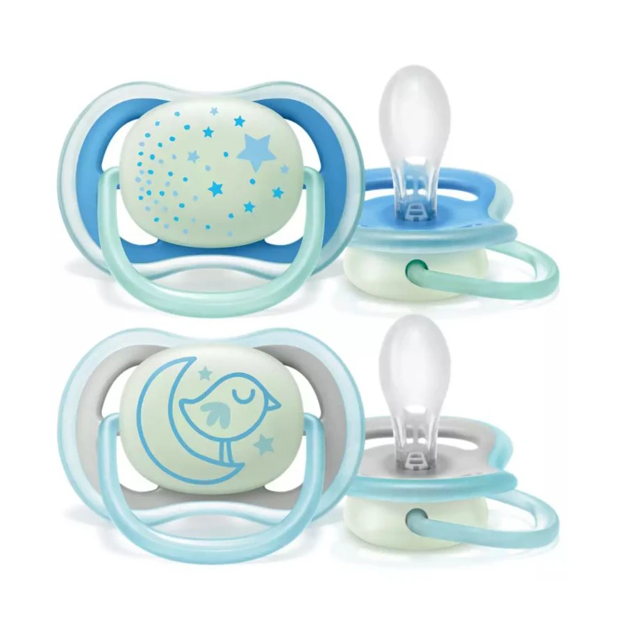 I Succhietti Ultra Air 6-18M di Philips Avent calmano il tuo bambino nei momenti di crisi e permettono alla pelle di respirare, inoltre grazie al bottone fluorescente sono facili da trovare anche di notte! Infatti, Ultra Air è dotato di fori extra-large per mantenere asciutta la pelle dei bimbi e di un pulsante che si illumina.