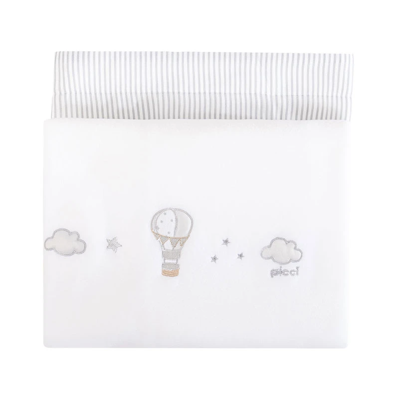 Picci Coperta Sonnocaldo Calda e Morbida con Ricami per Culla Aria 70x80cm di Picci è la coperta in pile decorata con graziosi ricami di una mongolfiera tra stelle e nuvole. Ideale per la Culla Aria ma può essere utilizzata anche in qualsiasi carrozzina o passeggino. Picci Coperta Sonnocaldo è realizzata in 100% poliestere. Lavabile in lavatrice a 40°.
