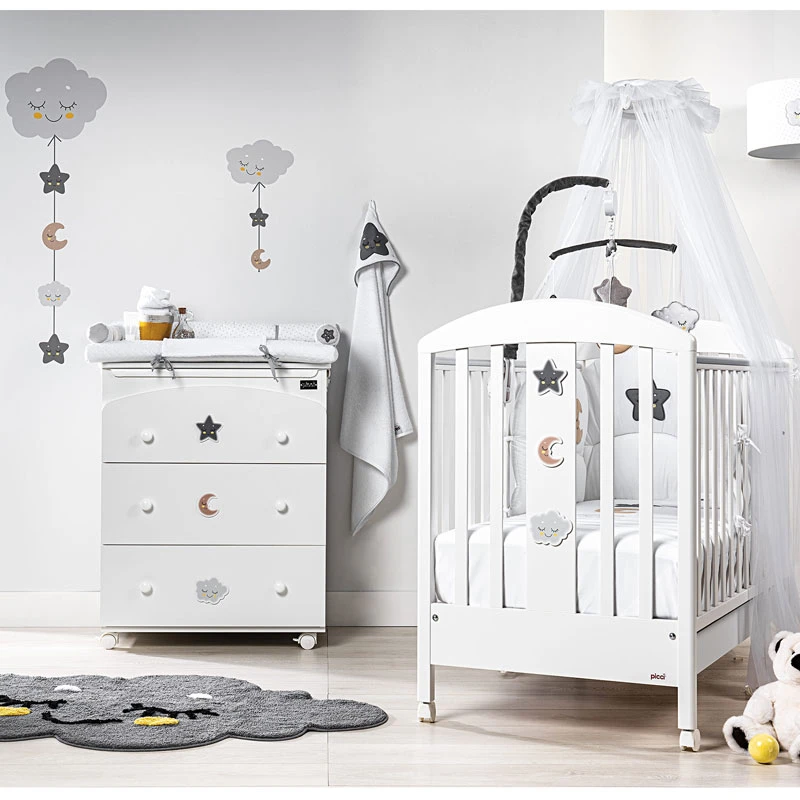 Picci Set 3pz Coprimaterasso, Lenzuolo e Federa per Letto Smile – Grigio di Picci offre un’ambiente sicuro, comodo e confortevole in cui riposare sia in estate che in inverno. É composto da Coprimaterasso 65 x 120cm, Lenzuolo Sopra 165 x 120cm, Federa Cuscino 60x40cm ed è compatibile con il Letto Smile e con tutti i modelli di lettini neonato di misure standard. Colori disponibili: Grigio.