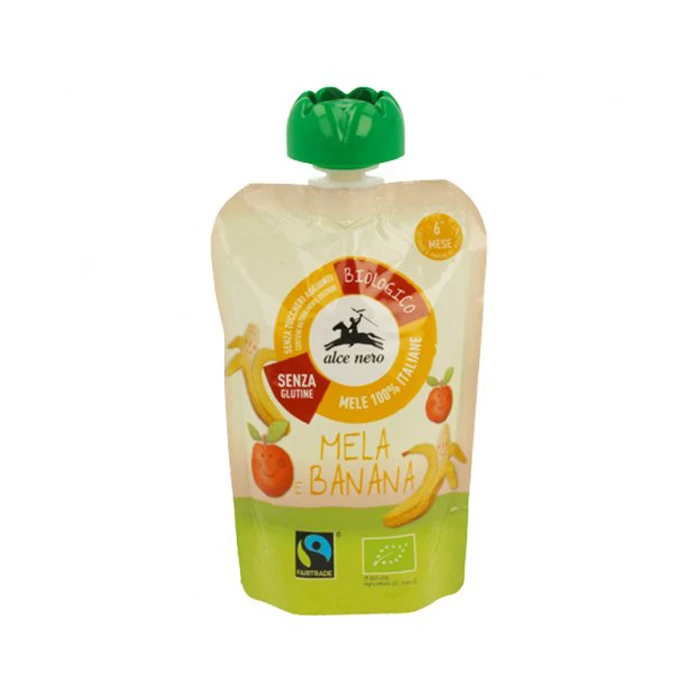 La Purea di Mela e Banana bio di Alce Nero è prodotta con mele biologiche italiane e banane certificate Fairtrade. La ricetta della purea, studiata per lasciare inalterato il gusto della frutta fresca, permette di nutrire i bambini senza l’utilizzo di aromi, amidi, coloranti e conservanti.