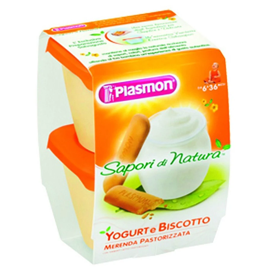 Plasmon Sapori di Natura Biscotto e Yogurt 2 x 120 g. Merenda pastorizzata indicata dal 6° mese compiuto, salvo diversa indicazione del Pediatra.