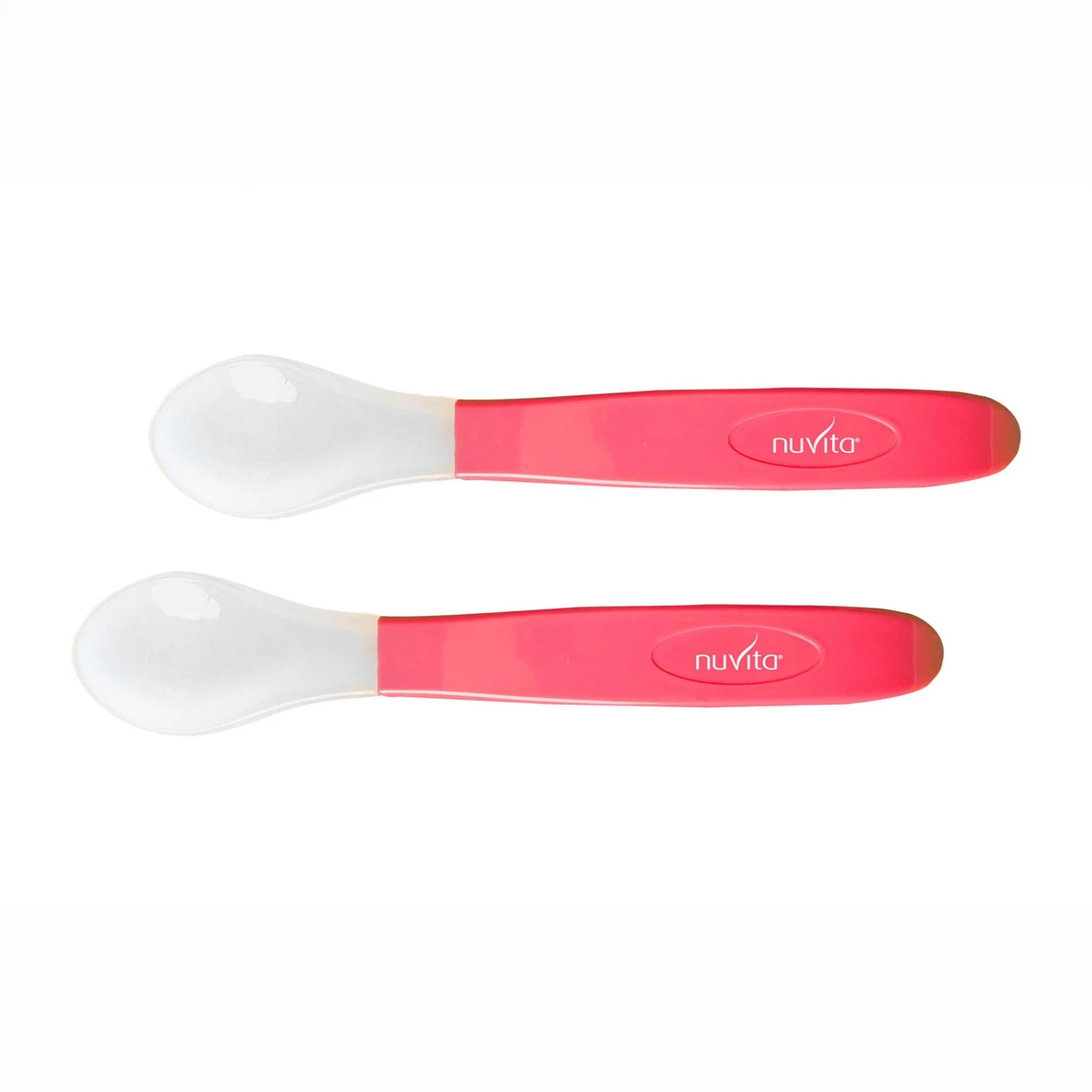 Il Set di 2 cucchiaini in silicone della Nuvita è igienico perchè disegnato per non toccare mai la superficie del tavolo quando posato.