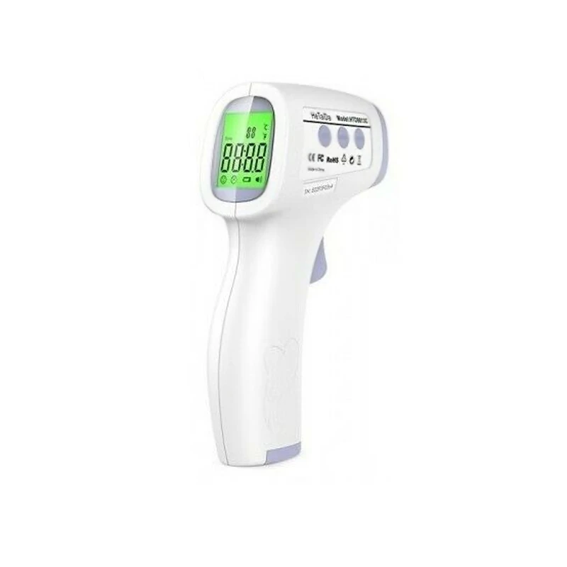 Termometro Nuvita No Contact che utilizza la tecnologia a raggi infrarossi per misurare la temperatura corporea o degli oggetti a distanza.